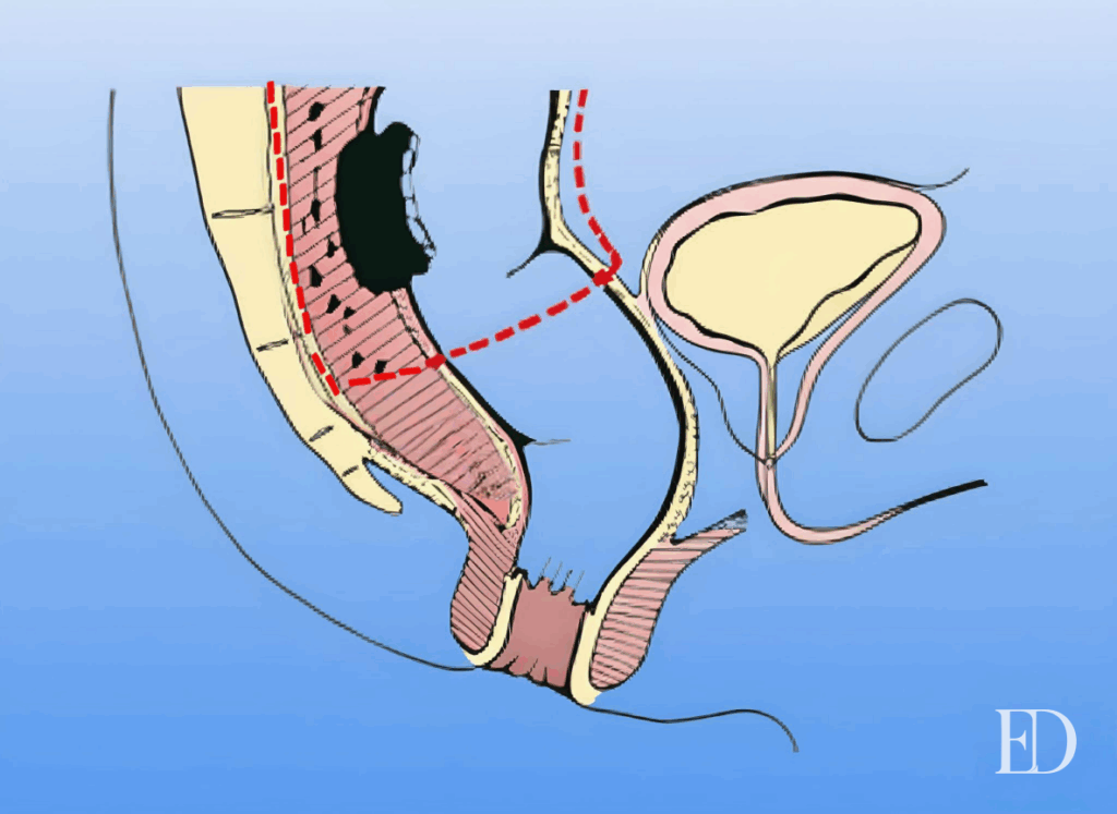 El recto es el segmento final del intestino grueso, con unos 15 cm de longitud, situado en la pelvis y conectado al ano mediante el esfínter anal. Su anatomía estrecha y profunda complica las intervenciones, pero avances como la resección total del mesorrecto (TME) vía laparoscópica permiten extirpar el tumor junto con los ganglios linfáticos adyacentes, reduciendo el riesgo de recidiva local hasta en un 50%.