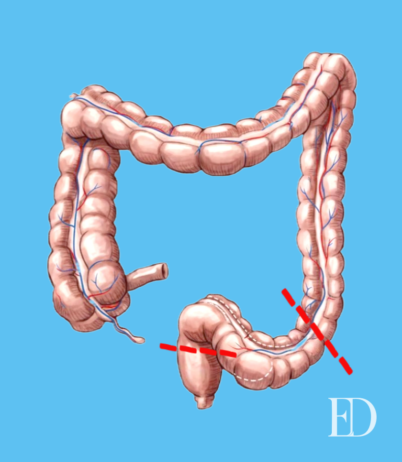- Resección anterior baja o ultrabaja con anastomosis colo-anal: En estadios II-III, se extirpa el recto y se reconecta el colon al ano. Esto evita la colostomía permanente en hasta el 70% de los casos.